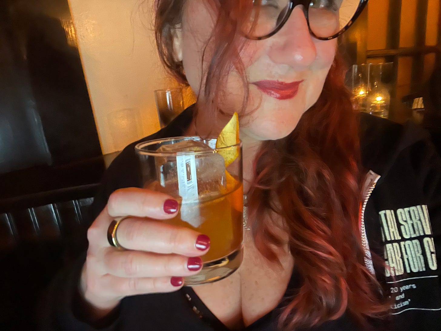In recent years, I’d mostly retired the beverage, as my show-going days slowed, and as many venues no longer seem to carry Absolut vodkas. I definitely took the wisdom of the “single tall” with me to many a karaoke night, where a single tall Campari and soda or bourbon and soda not only gave me liquid courage to sing, but also helped me relax my throat and diaphragm to sing better, to access notes I couldn’t hit otherwise. Recently, I went to see a show with Imaginary Liz, a reunion show of sorts, and it included getting reacquainted with my imaginary beverage of choice.