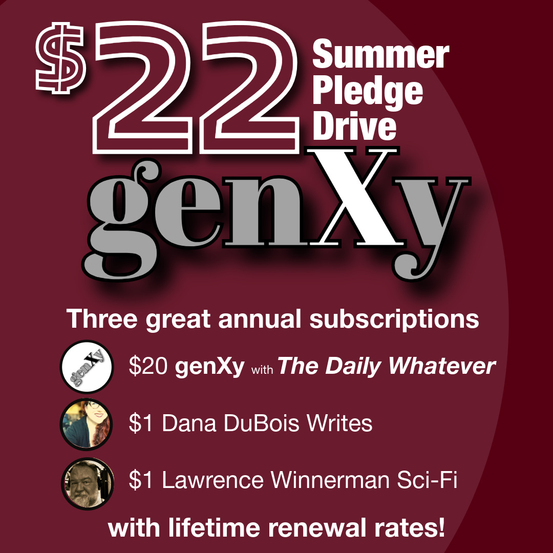 Now we’re in the final week of our genXy Summer Pledge Drive. It all ends this Sunday, September 21—as Earth, Wind, and Fire intended. “Ba dee ahh!” 🎶