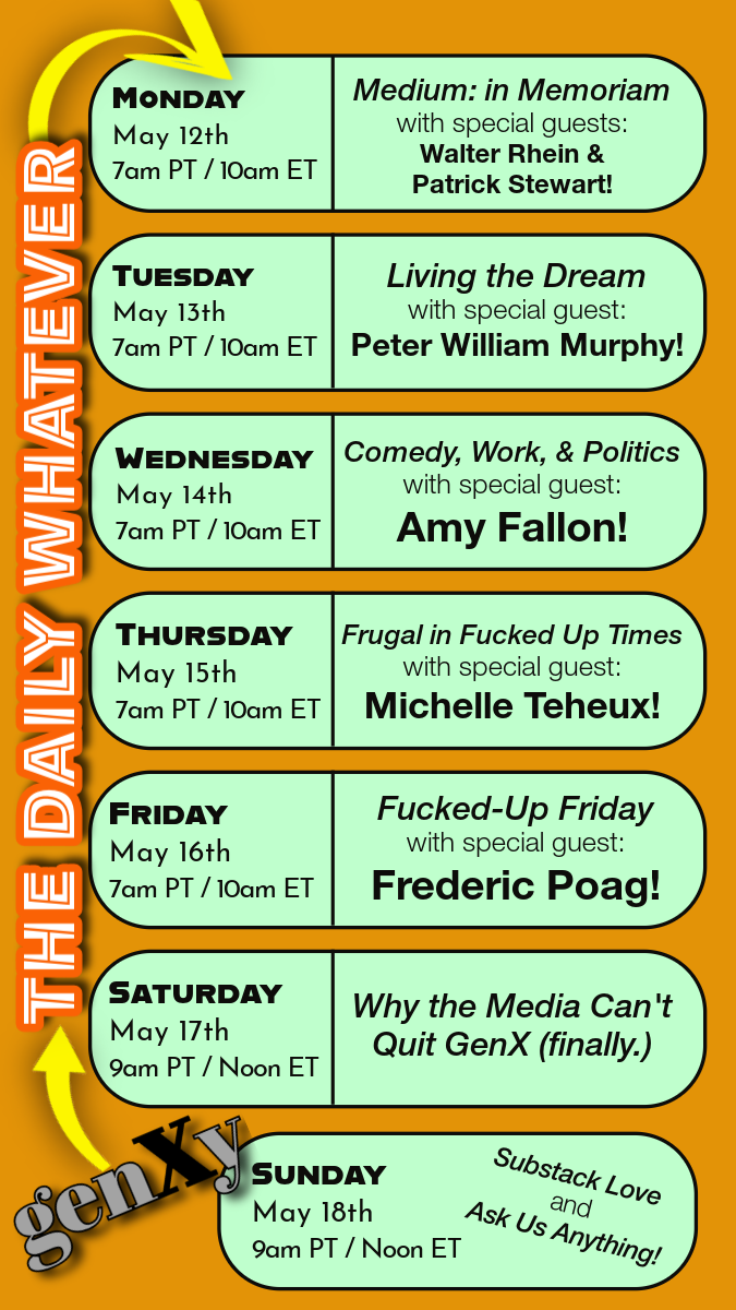 of onto The Daily Whatever this morning/ afternoon!We had a great conversation with her about a multitude of things, and we got to shout out that our little Substack venture here is only two months old, and The Daily Whatever is really only two weeks old.