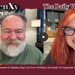 By the end of the hour, we’d crowned Rich our Fucked Up Friday winner—partly for the story, partly for surviving France’s collapsing government while raising a bilingual daughter and dodging Trump’s mugshot at the consulate. Dana’s Portland story was a close second, if only for the visual of her heroically enduring 18-minute dinner delays in the “hellscape.” My story ranked, mostly because we all expect to be indicted by a grand jury in the Trump regime at this point.