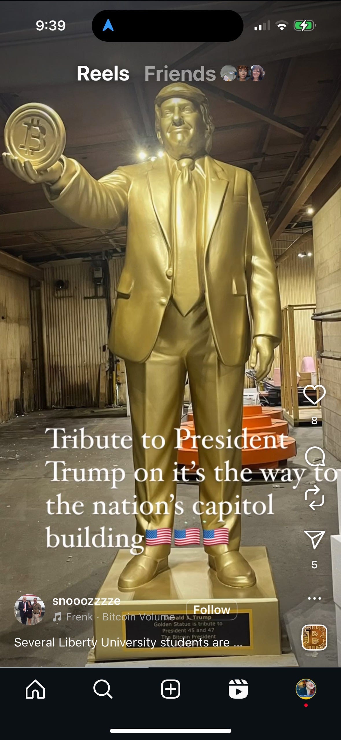And then, what to our wondering eyes should appear, but a GOLDEN STATUE OF DONALD TRUMP HOLDING A BITCOIN! Melissa edged her way up until she could read the plaque, and Chat, it is an UNIRONIC tribute to Trump’s advocacy for crypto put up by Liberty University and some pump-n-dump scheme.